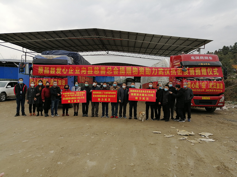 疫情暴發(fā)后,湖北武漢等地區(qū)相關(guān)物資全面告急,縣慈善總會多方籌措,盡一切所能,積極發(fā)動愛心企業(yè)募集救災(zāi)物資。2020年2月25日,第一批由順昌和順通農(nóng)業(yè)有限公司捐贈的10噸優(yōu)質(zhì)蘆柑和榕宏農(nóng)業(yè)科技有限公司捐贈的4噸流星包菜從從洋墩鄉(xiāng)的順昌柑桔品牌監(jiān)管倉出發(fā),奔赴武漢,定向捐贈給湖北省烹飪酒店行業(yè)協(xié)會,用于定點(diǎn)醫(yī)院醫(yī)護(hù)人員和患者的供保餐盒制作原材料供給。