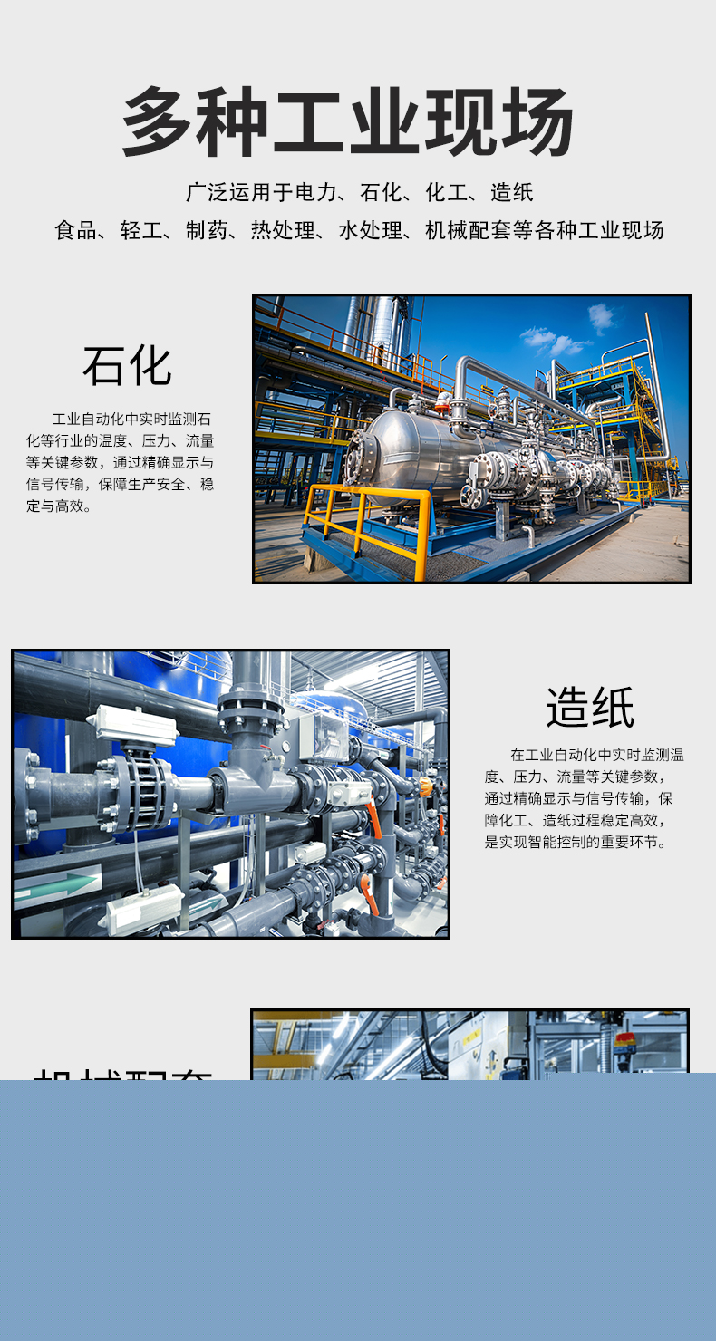 虹潤公司是專業(yè)生產(chǎn)數(shù)顯表的國家專精特新“小巨人”企業(yè),生產(chǎn)的簡易型數(shù)字顯示控制儀,具有全切換信號輸入,多種外形尺寸,高抗干擾,輸入/輸出/電源三隔離,性價比高等特點。該產(chǎn)品不僅通過德國萊茵 CE 認證,還獲得巡回檢測顯示方法及裝置、儀表殼體等2項國家發(fā)明專利,主持起草工業(yè)過程控制系統(tǒng)用模擬輸入兩位或多位輸出儀表、物聯(lián)網(wǎng)智能溫度儀表通用技術(shù)條件等2項國家標準,以及通信系統(tǒng)多通道數(shù)據(jù)采集控制終端規(guī)范軍用標準,參與國際5G標準制定,取得簡易數(shù)顯儀表等3項相關(guān)軟件著作權(quán)。產(chǎn)品廣泛應(yīng)用于電力、石化、冶金、化工、造紙、食品、輕工、制藥、熱處理、水處理、機械配套等各種工業(yè)現(xiàn)場。