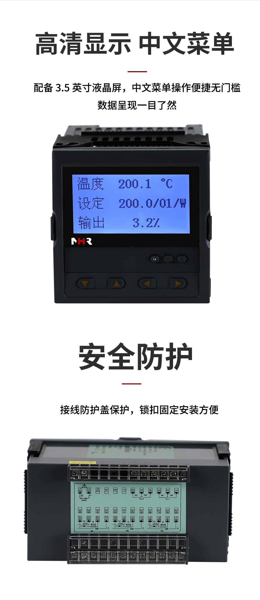虹潤公司是專業(yè)生產(chǎn)溫控器的國家專精特新“小巨人”企業(yè)。生產(chǎn)的“傻瓜式”液晶人工智能溫控器,具有傻瓜式操作,真正人工智能算式,多種輸出類型,控制精度達(dá)士0.1°C,支持RS485/RS232通訊輸出等特點(diǎn)。產(chǎn)品獲得智能化控制器、人工智能調(diào)節(jié)器及調(diào)節(jié)方法、模糊PID控制儀及控制方法、一種平板無紙記錄儀、巡回檢測顯示方法及裝置等5項(xiàng)國家發(fā)明專利,主持起草物聯(lián)網(wǎng)智能記錄儀表通用技術(shù)條件、物聯(lián)網(wǎng)智能溫度儀表通用技術(shù)條件、工業(yè)過程測量和控制系統(tǒng)用智能調(diào)節(jié)器等3項(xiàng)國家標(biāo)準(zhǔn),通信系統(tǒng)多通道數(shù)據(jù)采集控制終端規(guī)范軍用標(biāo)準(zhǔn),以及空間數(shù)據(jù)與信息數(shù)據(jù)傳輸系統(tǒng)等2項(xiàng)航天標(biāo)準(zhǔn)。參與國際5G標(biāo)準(zhǔn)制定,取得液晶PID調(diào)節(jié)控制記錄儀等4項(xiàng)相關(guān)軟件著作權(quán)。產(chǎn)品廣泛應(yīng)用于電石化、工業(yè)爐、試驗(yàn)設(shè)備、注塑機(jī)械、包裝機(jī)械等需要對(duì)現(xiàn)場溫度進(jìn)行監(jiān)測控制的行業(yè)。