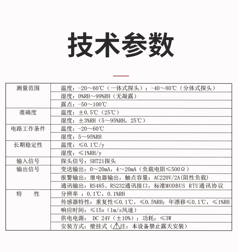 虹潤公司是專業(yè)生產(chǎn)環(huán)境監(jiān)測(cè)儀表的國家專精特新“小巨人”企業(yè)。生產(chǎn)的一體式溫濕度變送器,具有溫度、濕度、露點(diǎn)高精準(zhǔn)的測(cè)量與變送,報(bào)警繼電器輸出,RS485/RS232通訊,IP65防護(hù)等級(jí)等特點(diǎn)。產(chǎn)品獲得一種手持式低功耗溫濕度檢測(cè)儀、大屏幕溫濕度記錄儀等2項(xiàng)國家發(fā)明專利,主持起草物聯(lián)網(wǎng)智能溫度儀表通用技術(shù)條件、冷鏈溫度記錄儀等2項(xiàng)國家標(biāo)準(zhǔn),以及通信系統(tǒng)多通道數(shù)據(jù)采集控制終端規(guī)范軍用標(biāo)準(zhǔn),以及現(xiàn)場(chǎng)設(shè)備集成等5項(xiàng)智能制造國家標(biāo)準(zhǔn),參與國際5G標(biāo)準(zhǔn)制定,取得溫濕度儀表等3項(xiàng)相關(guān)軟件著作權(quán)。產(chǎn)品廣泛應(yīng)用于工業(yè)現(xiàn)場(chǎng)、農(nóng)業(yè)大棚、倉儲(chǔ)物流、地下管廊、養(yǎng)殖孵化、配電機(jī)房等諸多領(lǐng)域。