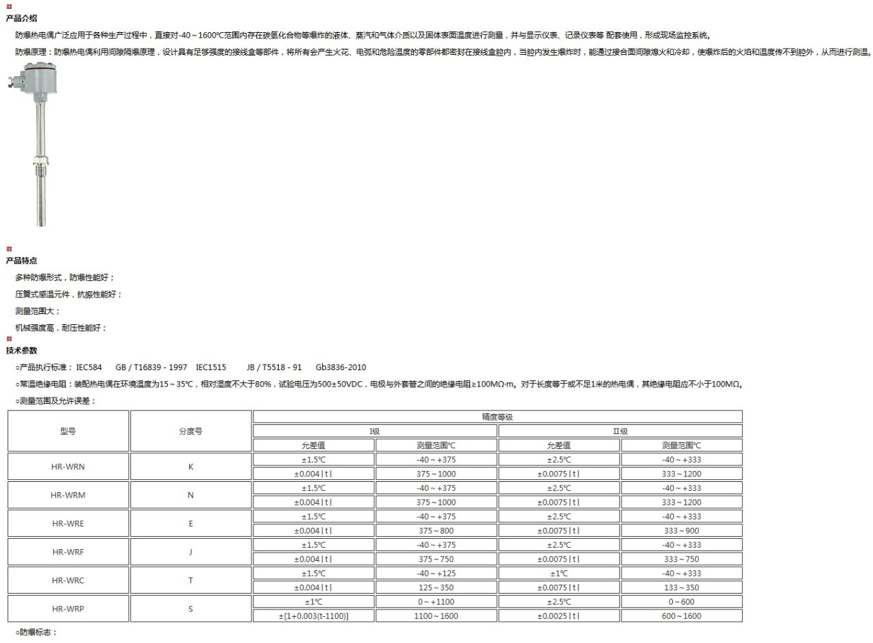 隔爆熱電偶是一種溫度傳感器,在化學(xué)工業(yè)自控系統(tǒng)中應(yīng)用極廣,通過溫度傳感器,可將控制對象的溫度參數(shù)變成電信號,傳遞給顯示、記錄和調(diào)節(jié)儀,對系統(tǒng)施行檢測、調(diào)節(jié)和控制。在化工廠,生產(chǎn)現(xiàn)場常伴有各種易燃、易爆等 化學(xué)氣體、蒸汽,如果使用普通的熱電偶非常不安全,極易引起環(huán)境氣體爆炸。
